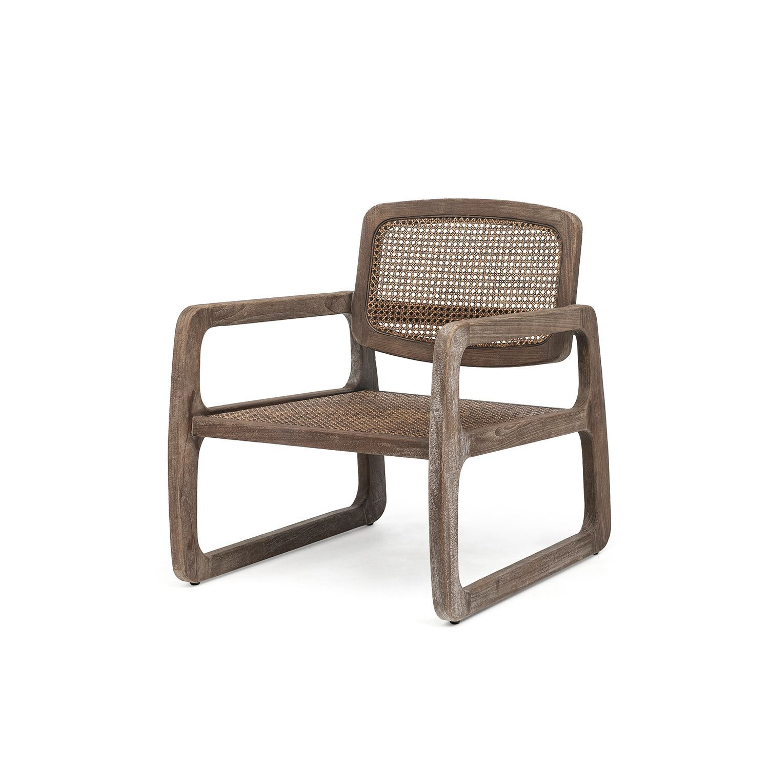 Easy Chair Sally - relaxfauteuil L64xB74xH77cm Authentic Brown + Rattan - Gommaire