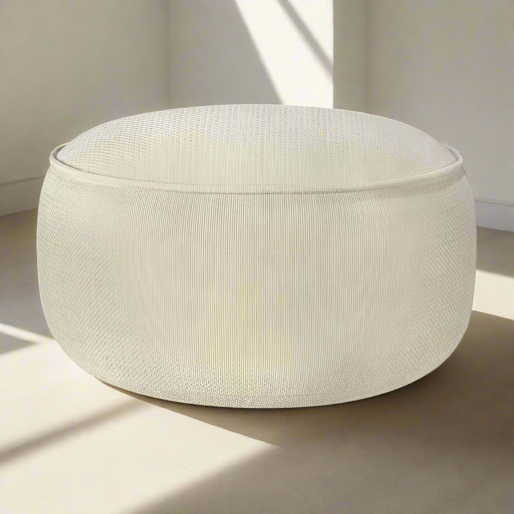 De Pouffe Nathan Large - poef groot van Gommaire belichaamt rust en verfijning dankzij zijn zachte Sand kleur en royale vormgeving. Deze veelzijdige poef is perfect als extra zitplaats, voetenbank of subtiele blikvanger in zowel moderne als tijdloze interieurs.