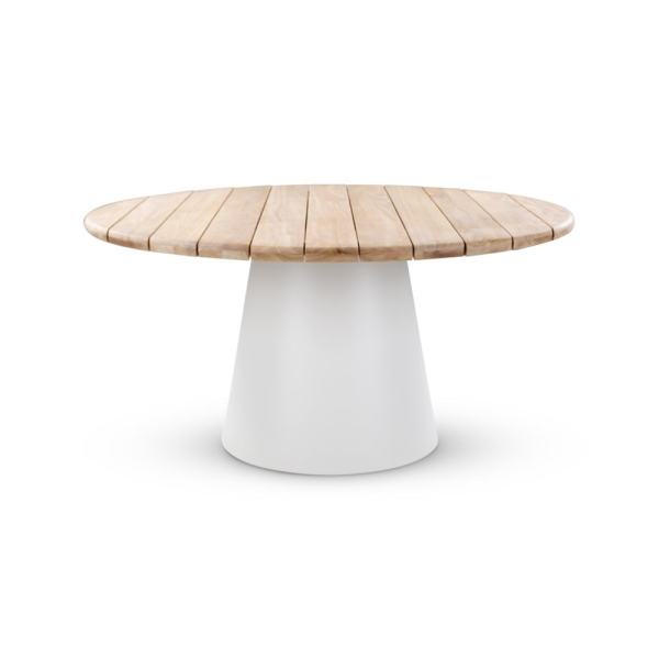 The Castle Line APOLLO Table Ø150 combines warm natural teak with a modern sand-finish aluminum base for a timeless, elegant look. The rounded design creates an inviting atmosphere, ideal for cozy dinners and stylish outdoor or indoor settings. Thanks to the use of high-quality materials, this table offers the perfect balance of design and durability.