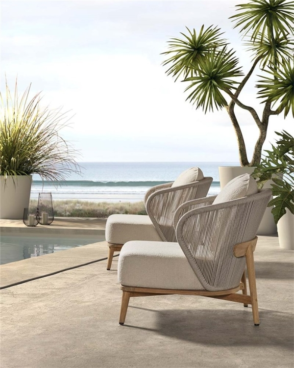 GABOR lounge chair teak natural, gray weaving incl clay cushions - Castle Line