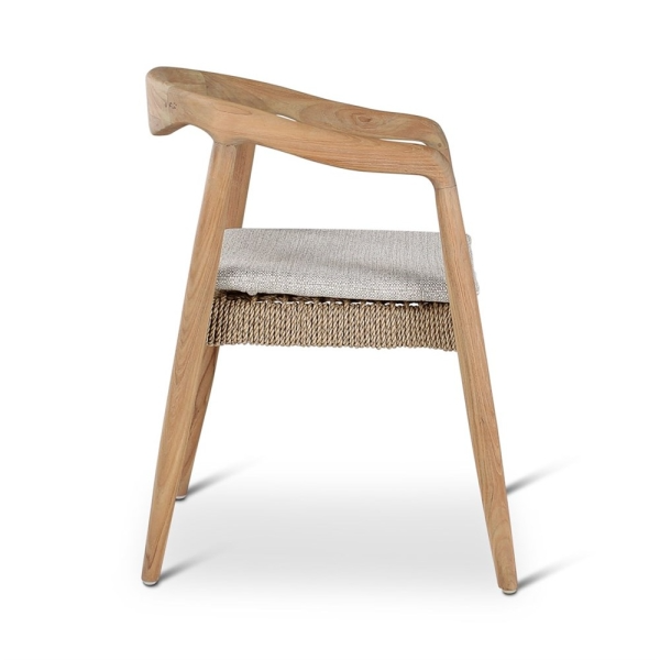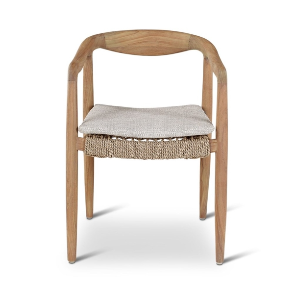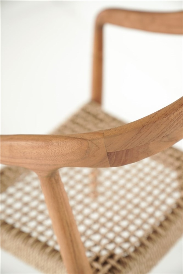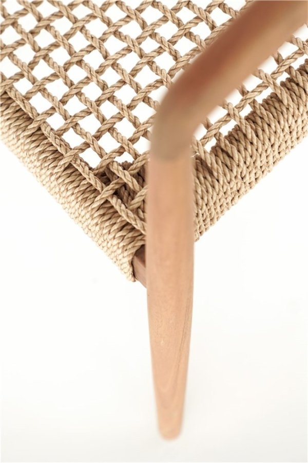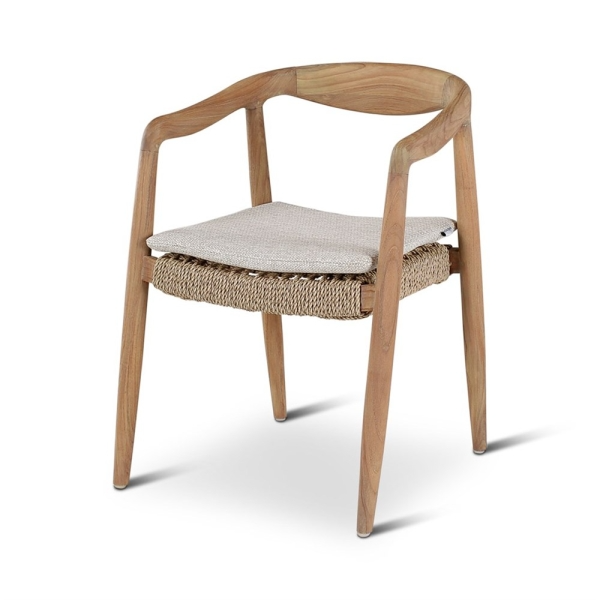 Fauteuil ANAIS – Teck naturel, tissage beige avec coussin crème – Ligne Castle