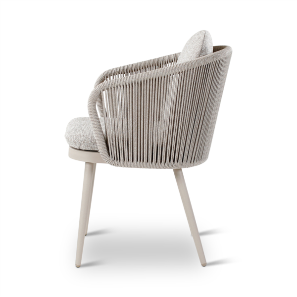 De MIKOS Armchair – alu topo met stone weaving en ensis kussens van Castle Line combineert een tijdloos design met duurzame materialen. Het aluminium frame in topo kleur zorgt voor een strak, licht silhouet, terwijl het stone weaving een warme, natuurlijke uitstraling biedt. De inbegrepen ensis kussens verhogen het zitcomfort en maken deze armchair ideaal voor elke stijlvolle buitenomgeving.