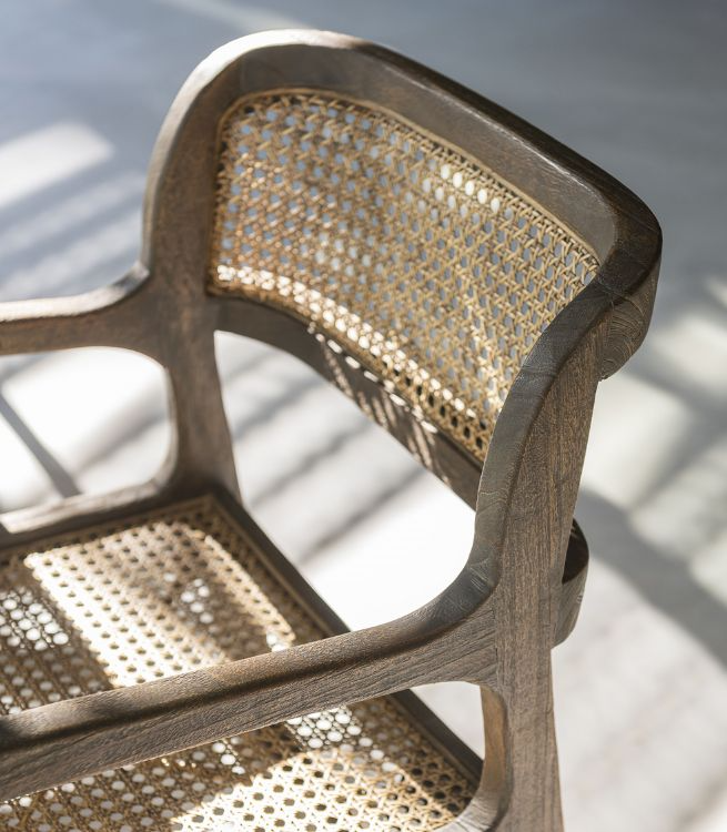 De Armchair Sally van Gommaire is een elegante armstoel die stijl en comfort moeiteloos combineert. Met afmetingen van L52 x B60 x H80 cm en een combinatie van Authentic Brown hout en rattan, brengt deze stoel een natuurlijke warmte en tijdloze charme in elk interieur. Ideaal voor gebruik in de woonkamer, loungehoek of naast een gezellige eettafel.